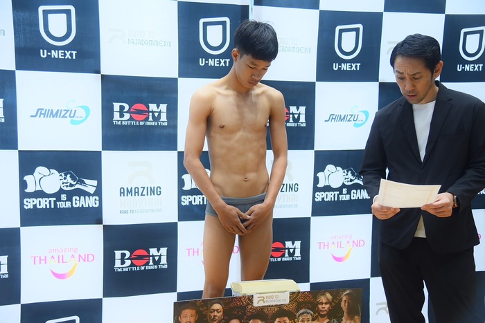 また、セミファイナルのフライ級(50.80kg)で対戦する元ラジャダムナンスタジアム認定ミニフライ級王者の竜哉・エイワスポーツジム(=奥脇竜哉/エイワスポーツジム)とタヌーピット・シットヨットタヌー(タイ)は共に50.7kgでクリアー。