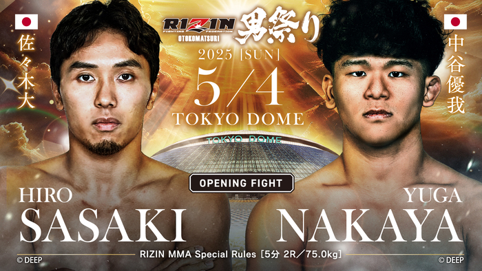 2025年5月4日(日)『RIZIN男祭り』(東京ドーム)のオープニングファイトが追加発表され、JTTの佐々木大(JAPAN TOP TEAM)と、『格闘代理戦争』で青木真也推薦選手だった中谷優我(BRAVE)が75.0kg契約(5分2R)で対戦することが決定。朝倉未来が自身のYouTubeチャンネルで「もう俺も万全で整ってる。JTT5人衆全勝で行く」と、チームの全勝を誓った。