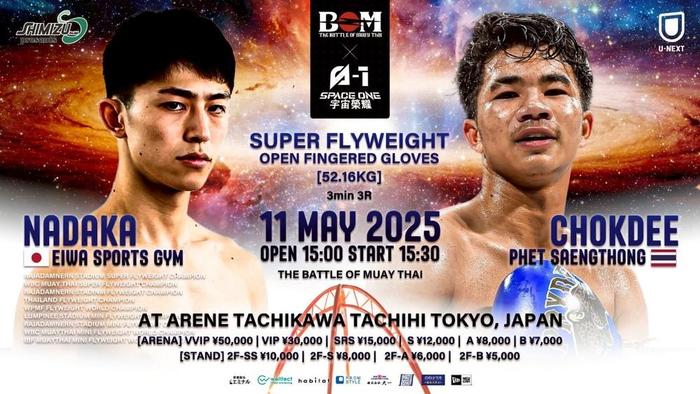 2025年5月11日(日)東京・アリーナ立川立飛にて、中国のプロキックボクシング大会『SPACE ONE 宇宙榮耀』と日本のムエタイ大会『BOM』が『SPACE ONE×BOM』(U-NEXT配信)としてコラボ大会を開催。