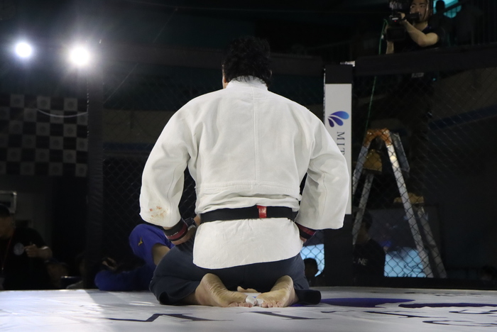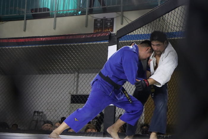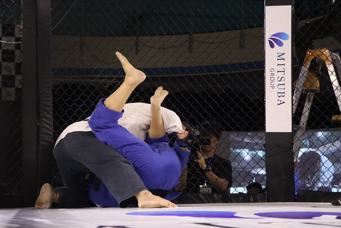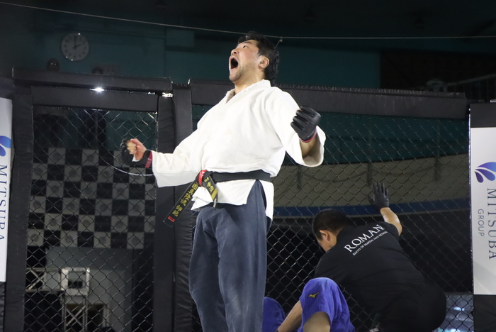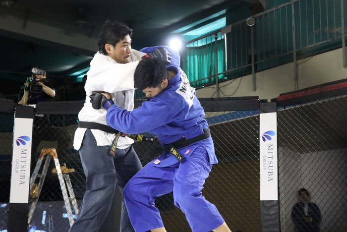 対するサンボ衣で日本サンボ選手権98kg超級優勝、コンバットレスリングでも日韓戦日本代表などの経歴を持つ。サンボといえば長期に渡りMMAの頂点に君臨したエメリヤーエンコ・ヒョードルのバックボーンとしても有名だ。サンビストのMMA適性はブラジリアン柔術家を凌ぐとも言われ、道着着用のMMAでは更にその攻撃バリエーションも多彩になるであろう事は間違いない。