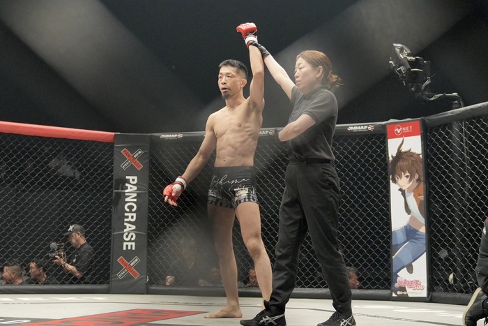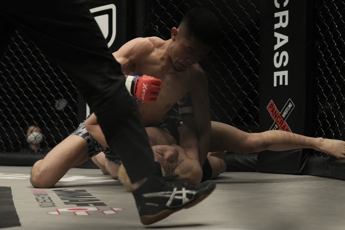 1R、両者オーソドックス。中村がパンチからタックルに入りケージに押し込むが、倒せずに離れる。左右のフックからタックルに入る中村だが、赤﨑がヒザを合わせる。そのまま組み付いてケージに押し込む中村。自ら離れた。赤﨑がジャブを出しながら出る。中村は大振りのフックを合わせようとするがかわした赤﨑。ジャブがヒットしダウン気味に倒れた中村。すぐに立ち上がるが、赤﨑が詰めていきパンチを入れる。赤﨑一転してタックル。ボディロックから抱えあげてテイクダウンを奪うと、側頭部をマットに打ちつけた中村の意識が飛び、鉄槌連打をもらいKO!
