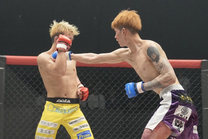 OOTA DOJOの松岡は修斗で1勝1敗。井上翔太に判定勝ち後、歩生の三角絞めに一本負け。BRAVEGYMの関は185cmの長身で今回がプロデビュー戦となる。