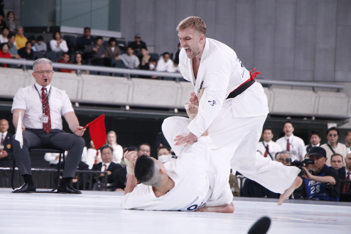 男子重量級(+90kg)では、今大会での現役引退を表明していた荒田昇毅(I.K.O.日本)がエキモフ・マクシム(I.K.O.ロシア)と対戦。