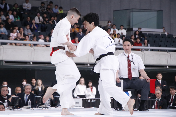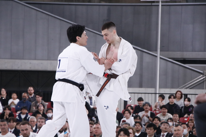 ティムールの顔面殴打で試合中断。再開後、下突きと上段廻し蹴りで攻める小林にティムールは鋭いヒザ蹴り。勢いに乗る小林の突き連打にティムールは下がり、一気に押していく小林。判定4-1で小林が世界王座に就いた。