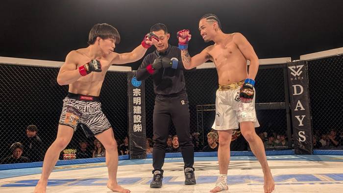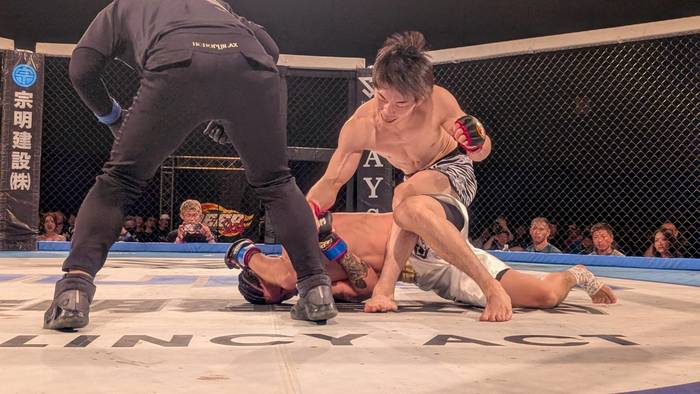 1R、ともにオーソドックス構え。大木のジャブに左ハイを見せる川崎。右ロー、左インローの大木。川崎は左ハイで上体を上げさせて豪快なダブルレッグテイクダウン! そのままサイドを奪い。右で差して左枕。大木の右手を左ヒザでピンして左ヒジ。亀になる大木にサイドバックからパウンド。