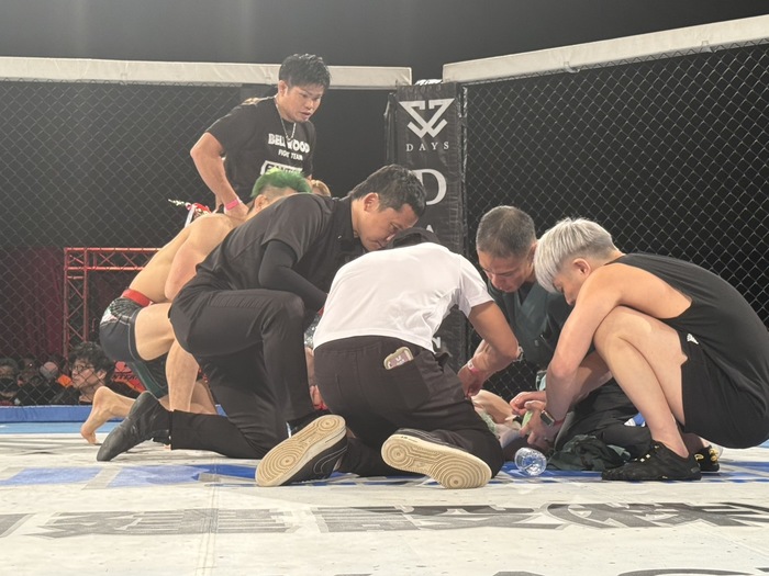 森がゆっくり前のめりの倒れて、鈴木が衝撃のKO勝ちを決めた。森は担架で運ばれた。