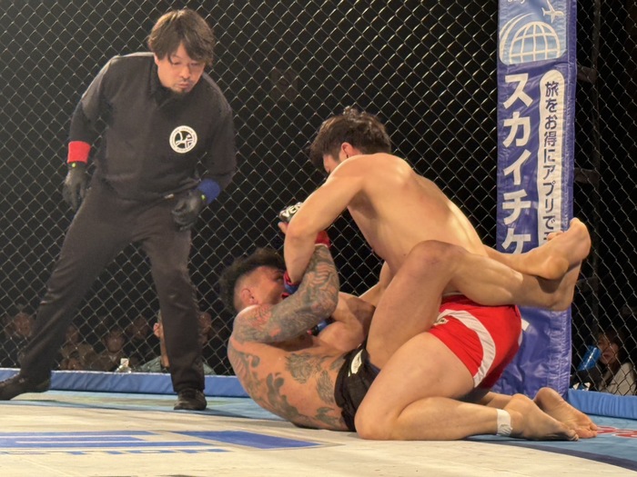 クローズドガードの篠原にトップから小林は左右ヒジ。残り1分。左パウンド連打。篠原の十字狙いをかわして上のまま拳を落としてゴング。