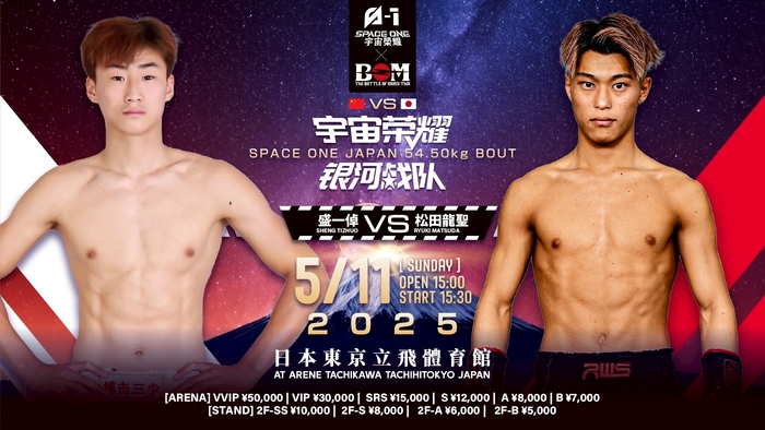 2025年5月11日(日)東京・アリーナ立川立飛『SPACE ONE×BOM』(U-NEXT配信)にて、シェン・イージュオ(中国)とSPACE ONEキックボクシングルール54.50kg契約3分3Rで対戦する元ラジャダムナンスタジアム認定バンタム級王者・松田龍聖(大原道場)のインタビューが主催者を通して届いた。