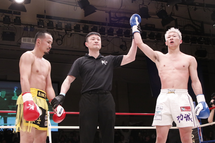 3Rも激しく打ち合い、蹴り合う両者。関口は新美の手数に全く負けていない。局面では手数で上回る場面もある。新美もコンパクトな右フックで応戦する。関口は歯を食いしばりながら左右フックで前へ。最後まで両者とも手数を出して打ち合い、蹴り合った。