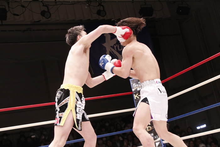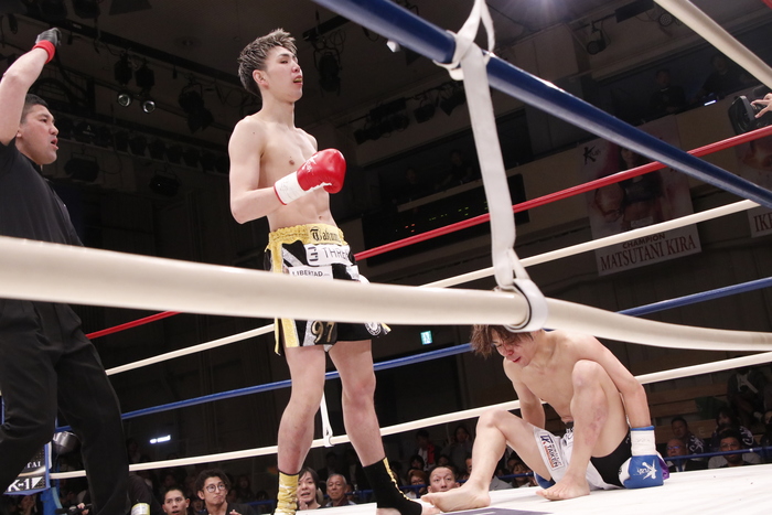 2R、右ミドルの蹴り合いから塚本が矢継ぎ早にワンツー。岩﨑も右を打ち返すが、塚本のパンチの回転が速く、右ストレートが次々と決まる。右ストレートでダウンを奪った塚本はさらにラッシュをかけ、ワンツー、右ストレートを連打。一方的な展開となり、ここでレフェリーがストップした。