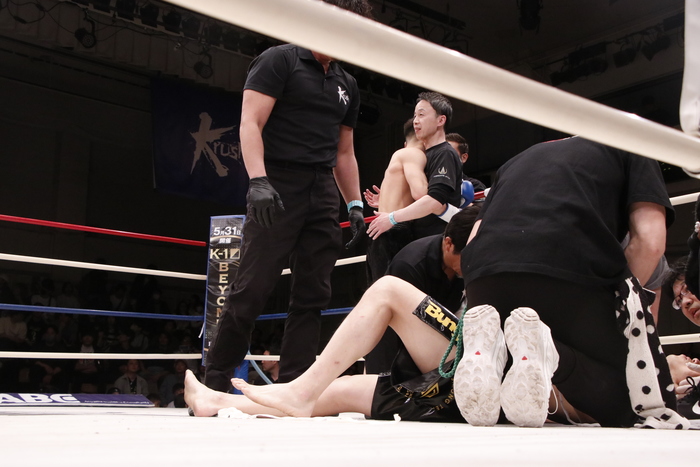 1Rが始まってすぐ、坂本の右ローからの左フックが決まり、松本はその場で崩れ落ちて失神KO。担架で運ばれた。