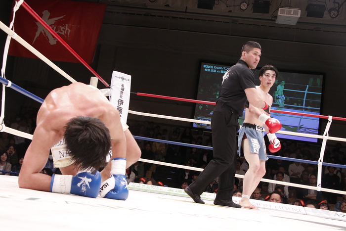 最後はパンチの連打で鵜澤を追いかけ、鵜澤が2度目のダウンを喫したところでレフェリーがストップした。