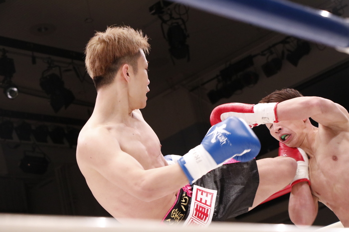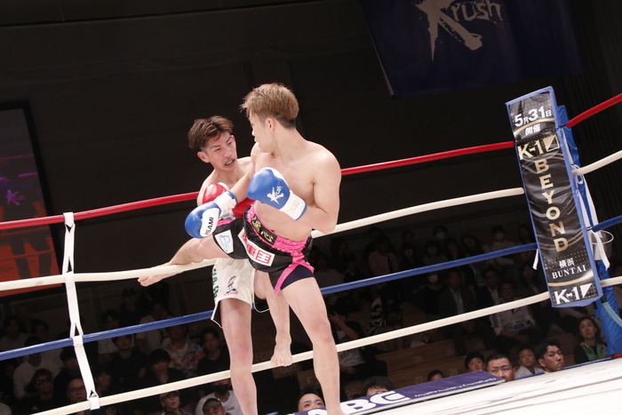 1R、前へ出る遥心が左インロー、ワンツー。ロープを背負った鈴木に遥心が左三日月蹴りを突き刺し、ダウンを奪う。