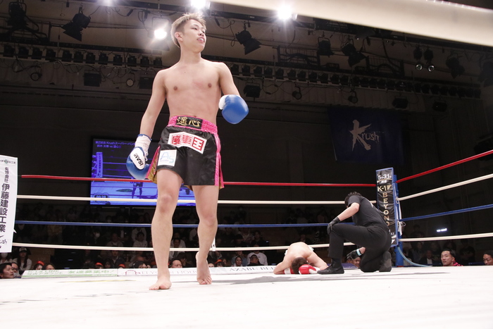 立ち上がった鈴木に遥心は今後は後ろ蹴り、これで鈴木がうずくまるようにダウンし、遥心の見事なKO勝ちとなった。
