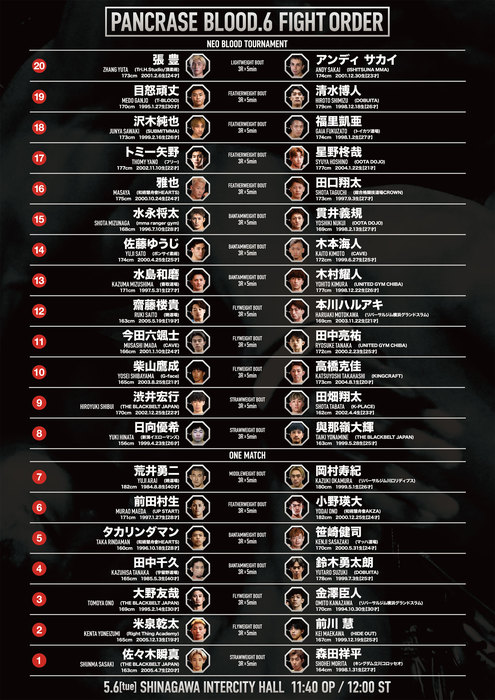 2025年5月6日(火・祝)、東京・品川インターシティホールで開催される『PANCRASE BLOOD6』の全試合順が下記の通り、発表された(※1回戦リポート)。
