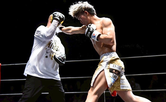 3分1Rの短い時間だけに、お互いに序盤から近距離で打ち合い、寺田はスウェーでパンチを交わしては鋭いミドルを打ち込んで会場を沸かせた。エキシビションマッチの後には、SAKIGAKEGYMの塾長で寺田の父を相手にミットにパンチと蹴りのミット打ちも披露した。