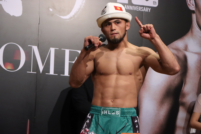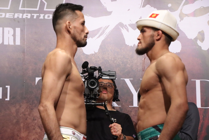 メインイベント(第16試合)のRIZINフェザー級タイトルマッチ5分3Rで対戦する、王者クレベル・コイケ(ボンサイ柔術)は65.55kg、挑戦者ラジャブアリ・シェイドゥラエフ(キルギス)は65.5kgで、クレベルは450アンダー、シェイドゥラエフは500アンダーでそれぞれパス。