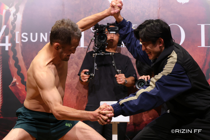 階級上の桜庭と対戦する中村は、実力者相手に6連敗中だが、今年3月のDEEPフェザー級GP1回戦で五明宏人を相手にノーガードでアームロックを狙い続け、判定負けでGP敗退も満員の後楽園ホールを大熱狂させた。45歳の誕生日目前の5月、約3年ぶりのRIZINにして初の東京ドームの大舞台に臨む(※会見での質疑応答)。