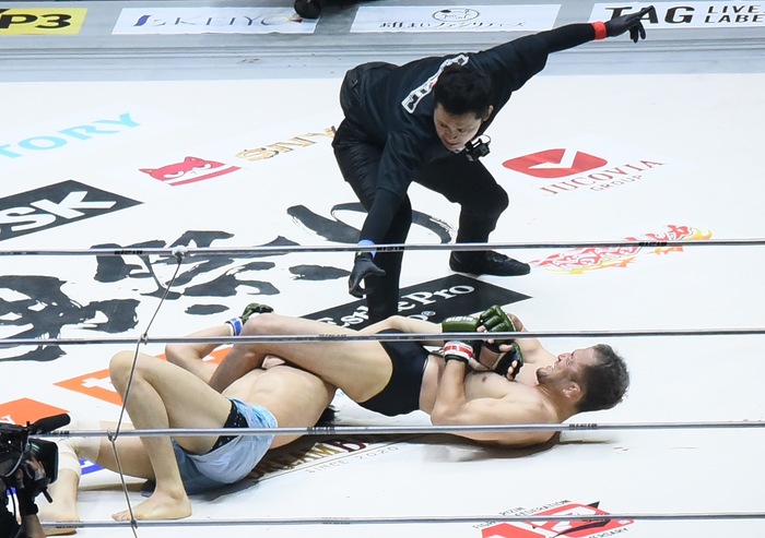 Uの遺伝子対決。“レジェンド”桜庭和志の長男の大世は柔道ベースからMMA転向。大晦日のMMAデビュー戦はプロ41戦の矢地祐介の蹴りに左ストレートを合わせてダウンを奪いパウンド連打、僅か26秒でTKO勝ち。