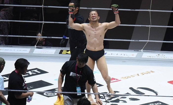 試合後、バックステージで中村は、「いま連敗中で、2、3年ぶりくらいに勝って、夢のような感じですね。自分だけの力ではないし、こうして一本勝ちできて。次また頑張ろうという感じです。桜庭選手は打撃がすごい強くて結構、やられましたね。ポジションとかはまだ慣れてないところがあるので、たまたまマウントとかが取れて。いまやれてよかったです。彼はまだ始まってもいないので。彼はこっから──こんなおじさんにやられて悔しいと思うので──これから期待ですね。60までMMAをやろうと言っているので、あと15年あるんで、まだまだ強くなれると思います。自分は扱い辛いとは思いますが、バリバリの選手とやっていきたいので、また機会があればRIZINに出たいですね」と語った。