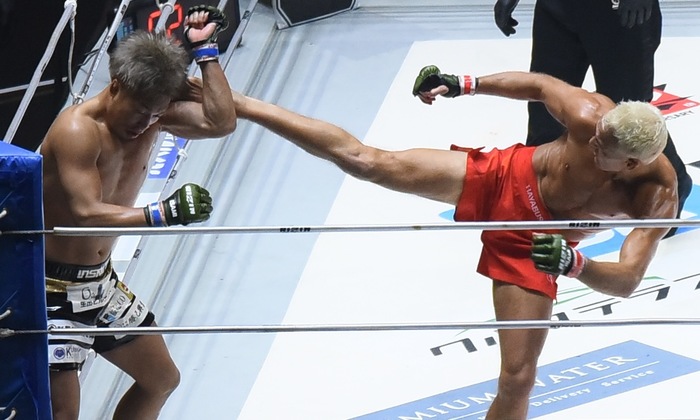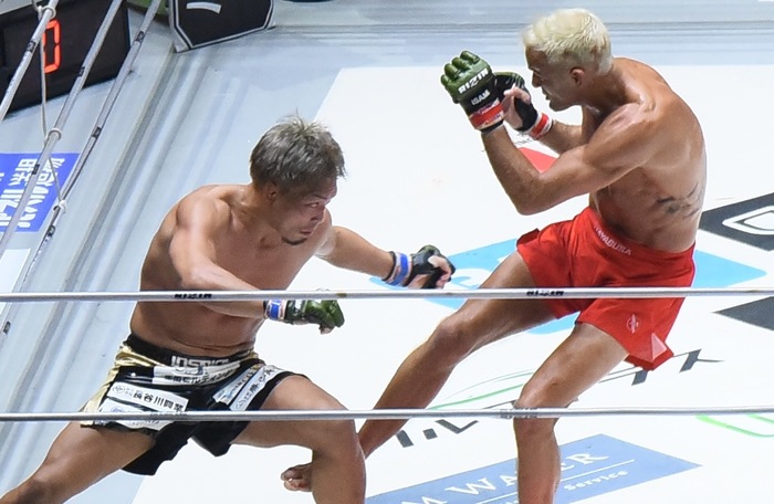 右オーバーハンド、左フックを振る太田をかわすサバテロはワンチーから右ハイ。かわした太田の組みもロープ外に上半身出てブレーク。太田のバックフィストをかわして左ジャブ、右ストレートのサバテロ。太田も左ジャブを返すように。右ハイのサバテロ。左の蹴りも。