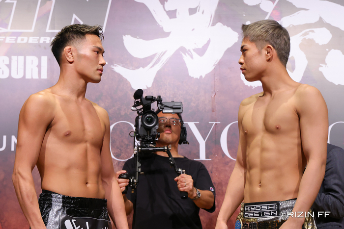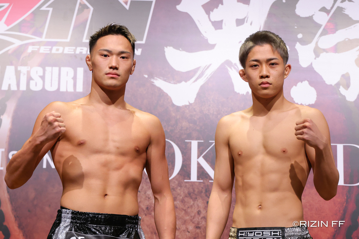 19歳の秋元は、62.5キロ契約でアラン“ヒロ”ヤマニハ、バンタム級で金太郎を連続TKO後、フェザー級でも鈴木博昭に判定勝ち。大晦日の「RIZINバンタム級王座次期挑戦者決定戦」で元谷友貴に完封されての判定負け。今回は再びフェザー級で左の強打を見せるか(※会見での質疑応答)。