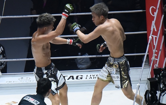 1R、サウスポー構えの秋元。オーソの高木。中央を取る秋元に高木は右ミドルハイ、左ジャブ。詰める秋元にさらに右ハイ。右ミドル。左前手フックを狙う。さばく秋元は前手争。高木の腰高のシングルレッグを切る。
