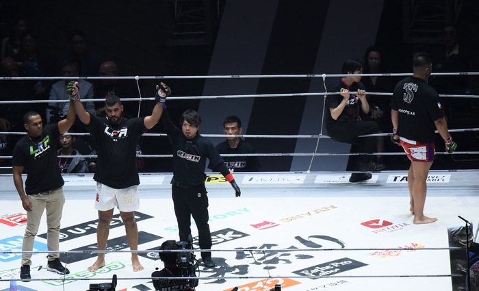 判定3-0でLFA推薦のアウグストが立ち技でコントロールして勝利。3人の日本人ヘビー級戦士のうち1人が消えると、アウグストはヘビー級の身体で側宙を見せた。