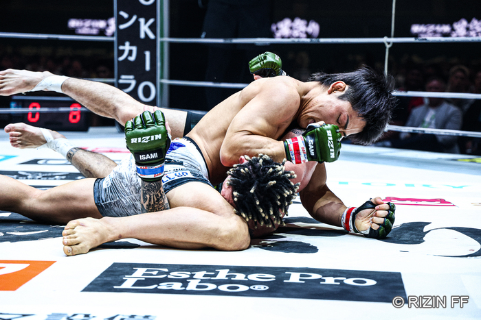 両腕を抑えてのパウンドは「あれは1年前にビリーとアメリカ修行に初めて行かせてもらった時に、メラブ(・ドバリシビリ)だったりが得意とするポジションの練習でやった技が今日たまたま出た感じです。いろいろな対策をしていたんですけれど、思ったよりもそこまで行かなかったこともありますけれど、やってきたことって1年後とかに出るんだって今日の試合で感じましたね」と明かす。