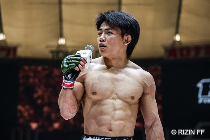 戦いを終えて、篠塚に対しての感情の変化はあったかと聞かれると「MMAナメんなよって気持ちはありますけれど、それを言っていいのは俺だけだと思っていますね。雑魚じゃんとか、すぐにテイクダウン取られてやっぱりやられたねとか、いろいろな声があると思うんですけれど、そんなの気にしないでほしいなって思っていて。この結果になるのが当たり前なので。そうしないといけないと自分としても思っていましたし。