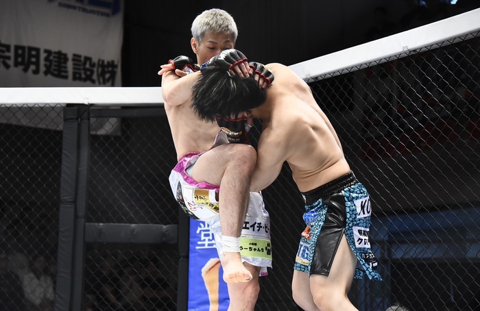 強い投げも持つ奥山に対し、いかに直樹は間合いを制して組ませず打ち勝つか。注目の立ち技出身MMAフェザー級戦だ。