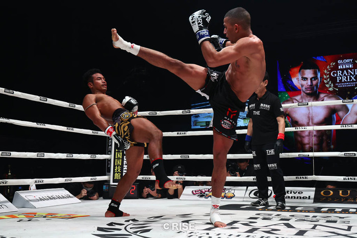 2024年12月、RISEで行われた「GLORY RISE FEATHER WEIGHT GRANDPRIX」の決勝で対戦したトリンダーデ(左)とペットパノムルン(C)GLORY/GONG KAKUTOGI