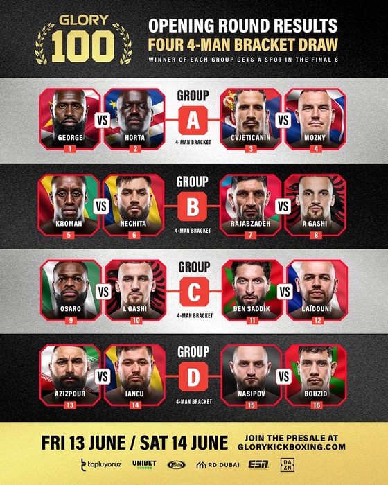 2025年6月14日(土・日本時間15日)オランダ・ロッテルダムのアホイで開催される『GLORY 100』の2日目(前日にも開催)に、2つのGLORY世界タイトルマッチが追加された。
