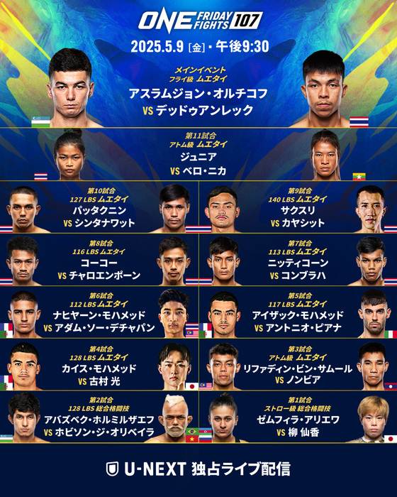 2025年5月9日(金)タイ・ルンピニースタジアム『ONE Friday Fights 107』(U-NEXT配信)に、今週は日本人選手2名が出場する。