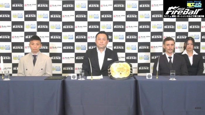 2025年5月11日(日)愛知・ポートメッセなごや第三展示館『RISE Fire Ball Nagoya』の前日計量&記者会見が、10日(土)名古屋市内にて13:00より行われた。