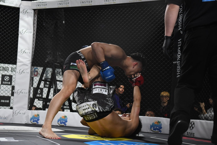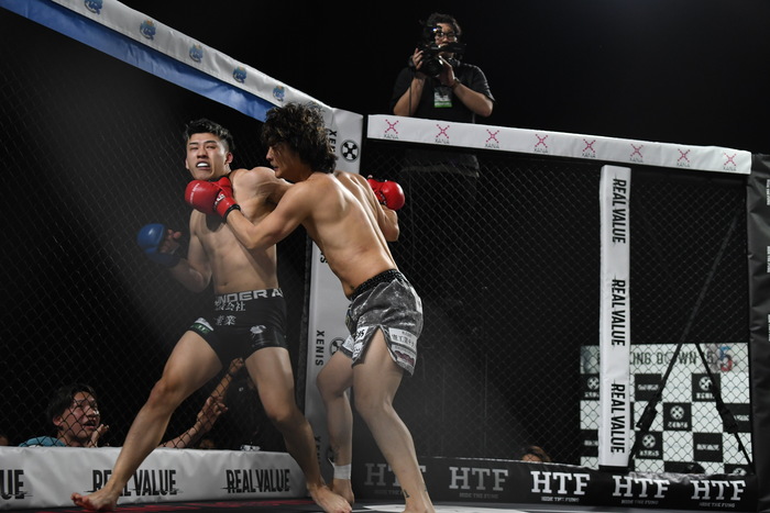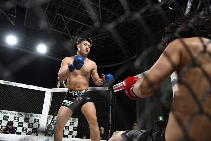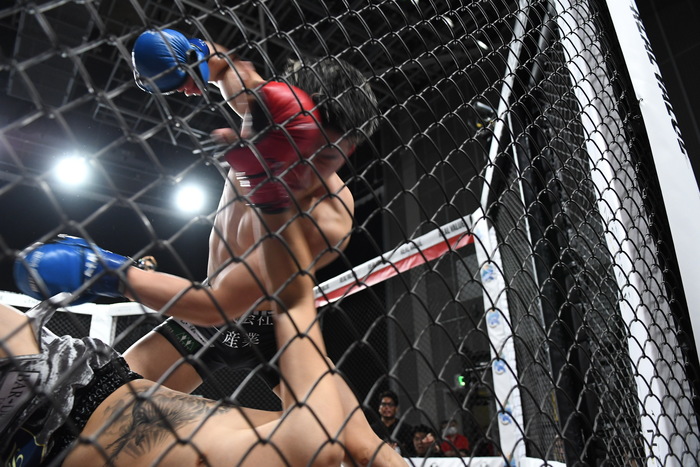 虎之介は胴へタックルに行くが足ポキはケージを背にしてテイクダウンを許さない。ブレイクの後に虎之介の左フックからの右フックがクリーンヒット、ダウンした足ポキに虎之介がパウンドで追撃。試合終了となった。
