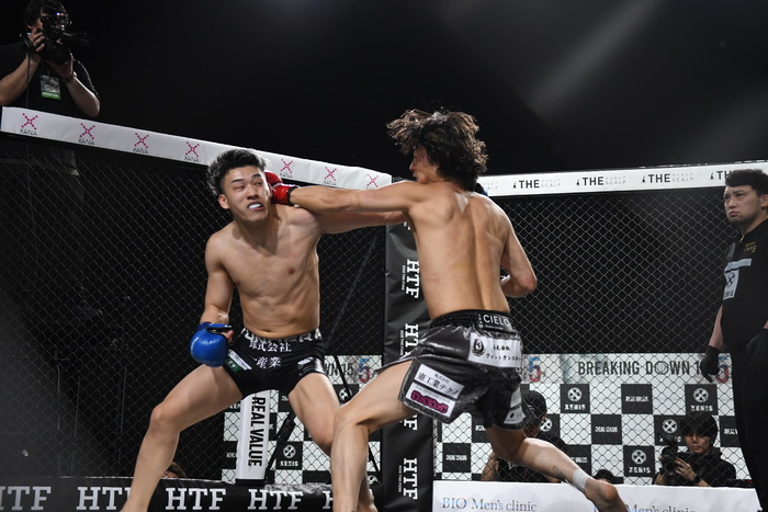 虎之介はマイクを持つと「勝ったぞ! もうこれで次、BreakingDown大阪大会、メカ君、上がってきてよ」と、次回大会の対戦相手にメカ君を指名。メカ君もケージに上がり「最近のBreakingDown格闘技ばっかでつまんねえよな。そんな中、誰とやればエクスタシーを得られるかなってと思って見ていた」と、対戦を受諾。虎之介はベアナックルMMAでの対戦をアピールした。