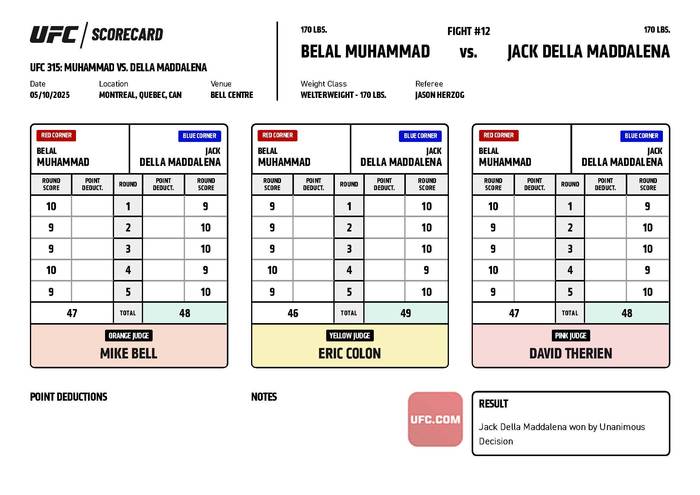 2025年5月10日(日本時間11日)朝7時30分から、カナダ・ケベック州モントリオールのベル・センターにて『UFC 315: Muhammad vs. Della Maddalena』(U-NEXT配信)が開催された。