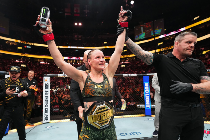 王者シェフチェンコは、2022年6月の『UFC 275』でタイラ・サントスに5Rスプリット判定勝ちで、女子UFC史上最多連続防衛記録となる7度目の王座防衛に成功。しかし、2023年3月『UFC 285』の王座戦でアレクサ・グラッソと対戦し、スピニングバックキックを外した際にバックを奪われ、そのままネッククランクで一本負け。王座から陥落し、約5年半ぶりの敗戦となった。37歳。