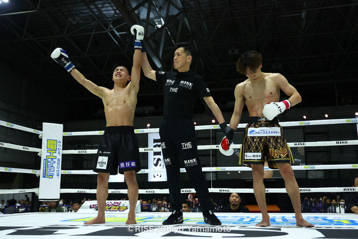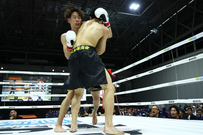 2Rもローの蹴り合いから始まり、正木が強い右カーフと右ハイを蹴る。大久保はパンチからワンキャッチのヒザ、速いコンビネーションで正木にロープを背負わせるが、正木もワンキャッチからのヒザで応戦。将来的にボクシング転向も考えているという大久保はコンビネーションを回転させ、正木の左に右クロス。正木は手数が減った。