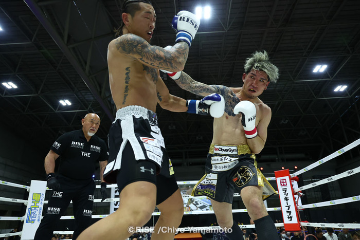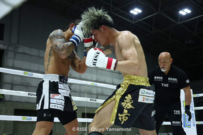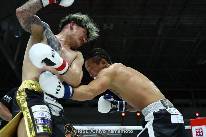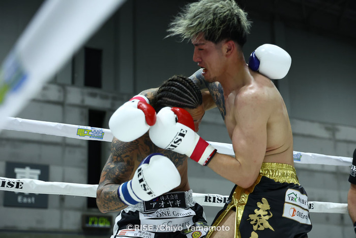 1R、石川はパワフルなワンツーで前へ出ると青木のガードの上から叩きつける。青木も右フックで反撃。青木はガードを固め、近付くとワンキャッチからのヒザ。組むと石川の顔を片手で押す。ジャブを突く青木に石川は右フック。青木の右カーフに一瞬石川がバランスを崩す。石川も右カーフを蹴り返すが、青木は左ボディ。青木のヒットが目立った。