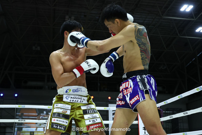 3R、パンチで前へ出る匡志を右ストレートで迎え撃つジェット。右ロー、右ハイ、右ストレートと匡志を下がらせる。どんどん前へ出て倒しに行くジェットが右ストレート、右フックを連発。さらに右ハイ。右カーフで応戦する匡志だが、ジェットはワンキャッチからのヒザも使う。ボディを打つ匡志へジェットは右ハイ。ジェットの右ストレートに匡志が左フックを返すが、ジェットは前蹴りとジャブで距離をとる。最後にラッシュを繰り出した匡志だが、前蹴りで突き放されて試合終了。