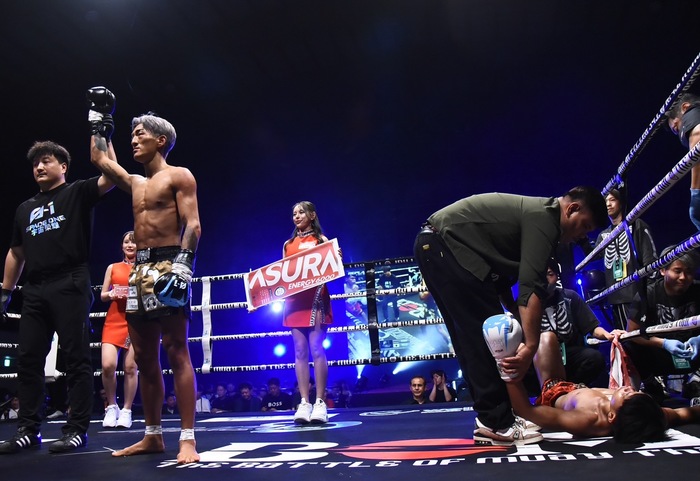 シワラットは左ミドル、黒田は左ストレート。黒田は左ストレートで下がったシワラットにもう一度左ストレートを放ち、それがかわされると伸ばした腕を戻さず引っかけたまま左ヒザ蹴りを突き刺してダウンを奪う。シワラットは悶絶して立ち上がることが出来ず、黒田の秒殺KO勝ちとなった。