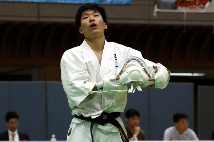 空道(くうどう)とは道衣と顔面防具を着用のうえで、突きと蹴りはもちろん頭突きやヒジ打ち、道衣を掴んでの打撃・投げ・寝技によって争う“着衣総合格闘技”。今大会は身長(センチ)と体重(キロ)の数値の和(体力指数)によってクラス分けを行う体力別大会として行われる。入場は無料。