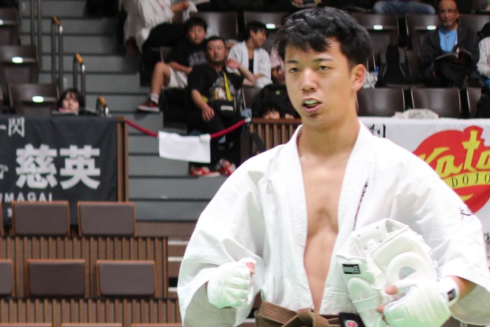 4歳からの空道歴と、高校レスリング競技実績をもち、2021年に18歳で目黒と全日本の決勝を争い、その後、大学生時にはキックボクシングやMMAにも取り組み、大道塾総本部内弟子となり、佐々木とも名勝負を繰り広げてきた大西凜駿(22歳)。
