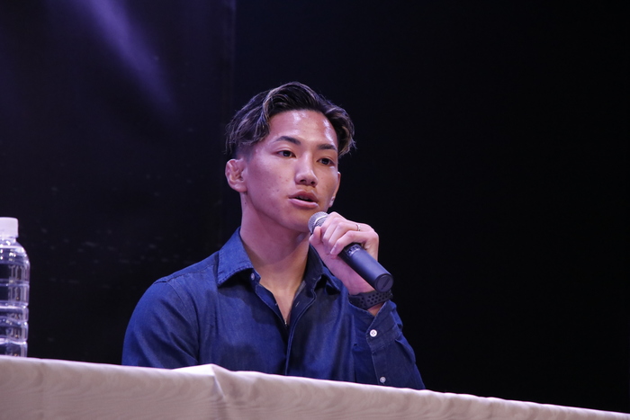 57kg契約と本来の55kgよりも2kg重い契約体重に関しては、「1回ありました」と過去に経験しているとし、「上げることは一切考えてない。ほんまに強い選手は体重関係ないと思うので、1~2階級くらいでは。それもなぎ倒していけるような選手になりたいし、戸井田選手と最高の打ち合いをしたいので今回決めました」と、今回57kgで戦う理由を話した。