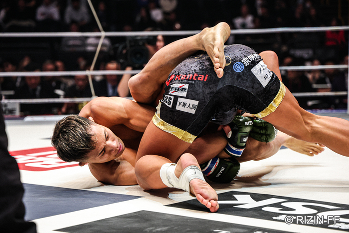 アームロック職人の新居は、RIZIN2連敗中。摩嶋一整に一本負け、昨年大晦日には盟友・武田光司と対戦し、ローブローにより、その時点までのテクニカル判定により0-3の判定負けを喫した。
