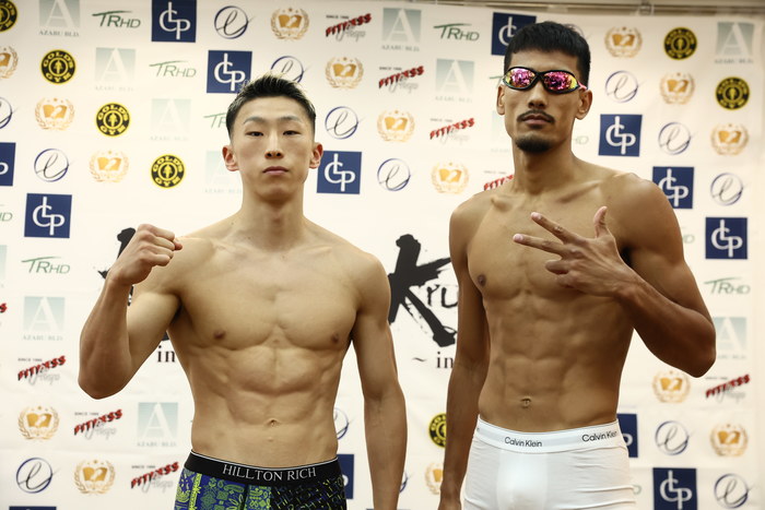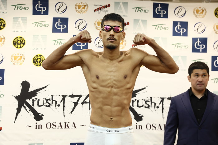 メインイベントのKrushスーパー・ウェルター級タイトルマッチ3分3R延長1Rで対戦する、王者・小田尋久(TEAM3K)は69.75kg、挑戦者アビラル・ヒマラヤン・チーター(ネパール/志村道場)は69.9kgでそれぞれ計量をパス。