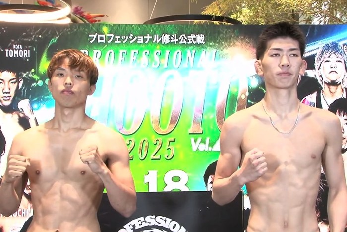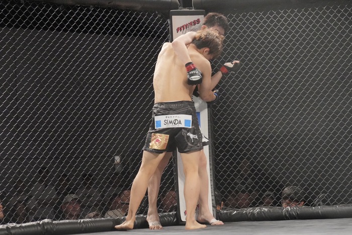 左で差して押し込む塚本に、左小手に金網背にする瀬戸口は、左ヒザをレバーに突き刺し、塚本がダウン。瀬戸口がパウンドを打ち込みレフェリーストップ! 2R1分26秒、瀬戸口KO勝ち。
