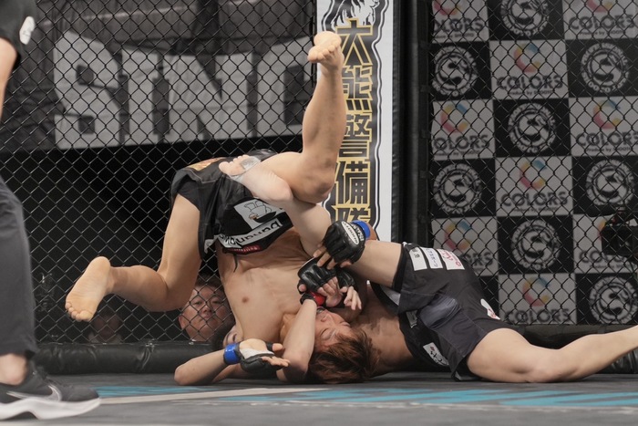 瀬戸口は首をギロチンに抱えるが、外れてガードを取る。下から三角をサバいてパスする塚本だが、瀬戸口がディープハーフからスイープし上を取り返す。塚本が立ち上がりスタンドバックに。残り10秒で瀬戸口がバックから腕十字を狙うが1R終了のホーン。